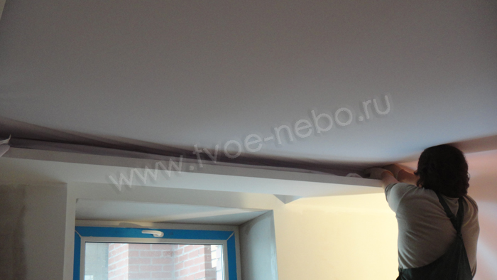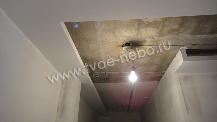 Как нам рассказал заказчик, до приезда на объект представителя компании «Твоё Небо» на квартиру приезжали 4 специалиста от разных компаний, но никто из них не брался за выполнение данного заказа, из-за критических размеров гипсокартонных конструкций, кто то из специалистов сказал, что осуществление монтажа тканевых потолков вообще невозможно.